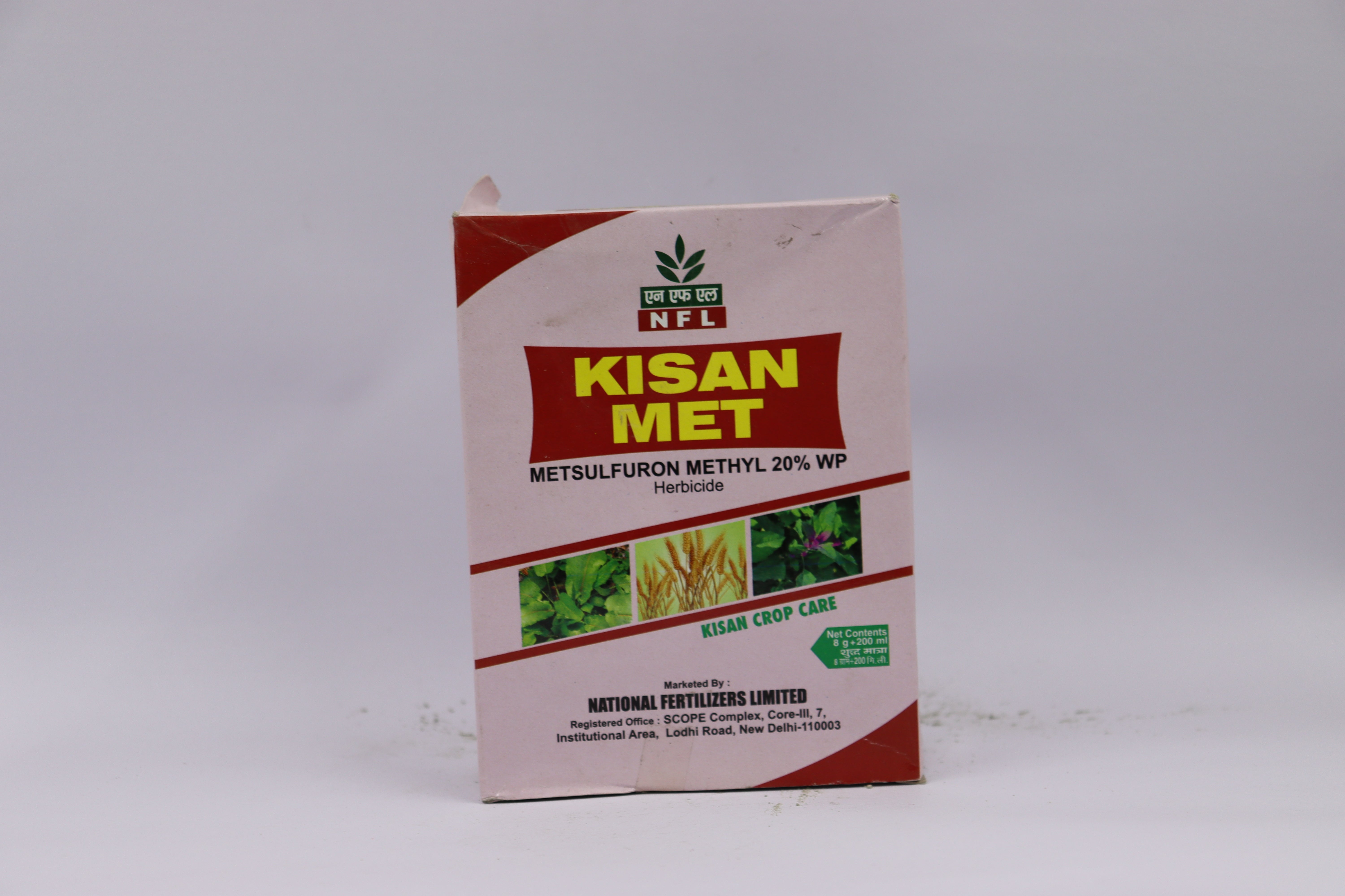 NFL Kisan Met Metsulfuron Methyl 20% WP Herbicide 200ml is a targeted solution designed to control broadleaf weeds and sedges in various crops. Its water-dispersible granule formulation ensures easy mixing and uniform application. This herbicide efficiently inhibits weed growth, helping improve crop yield and quality by reducing competition for nutrients and sunlight. Ideal for precise weed management, it supports healthier crop development through effective weed suppression.