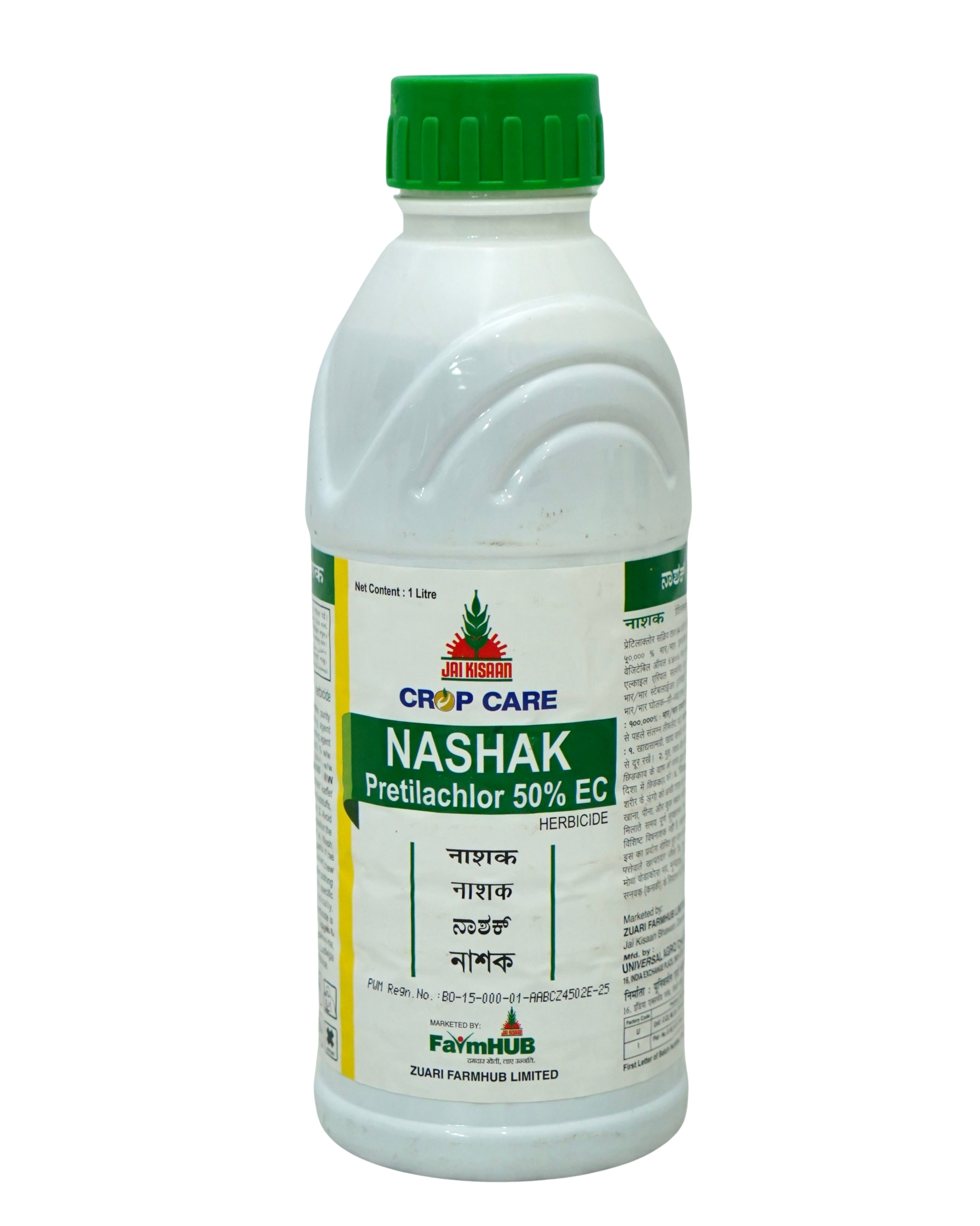 NFL Kisan Preti Pretilachlor 50% EC Herbicide is a specialized agricultural solution designed to control a broad spectrum of annual grasses and certain broadleaf weeds in paddy fields. With a potent 50% emulsifiable concentrate formulation, this 500ml herbicide ensures effective pre-emergence weed control, promoting healthier crop growth and improved yields. Its expert-grade composition allows for targeted application, reducing competition for nutrients and enhancing overall field productivity. Ideal for farmers seeking reliable weed management in their rice cultivation.
